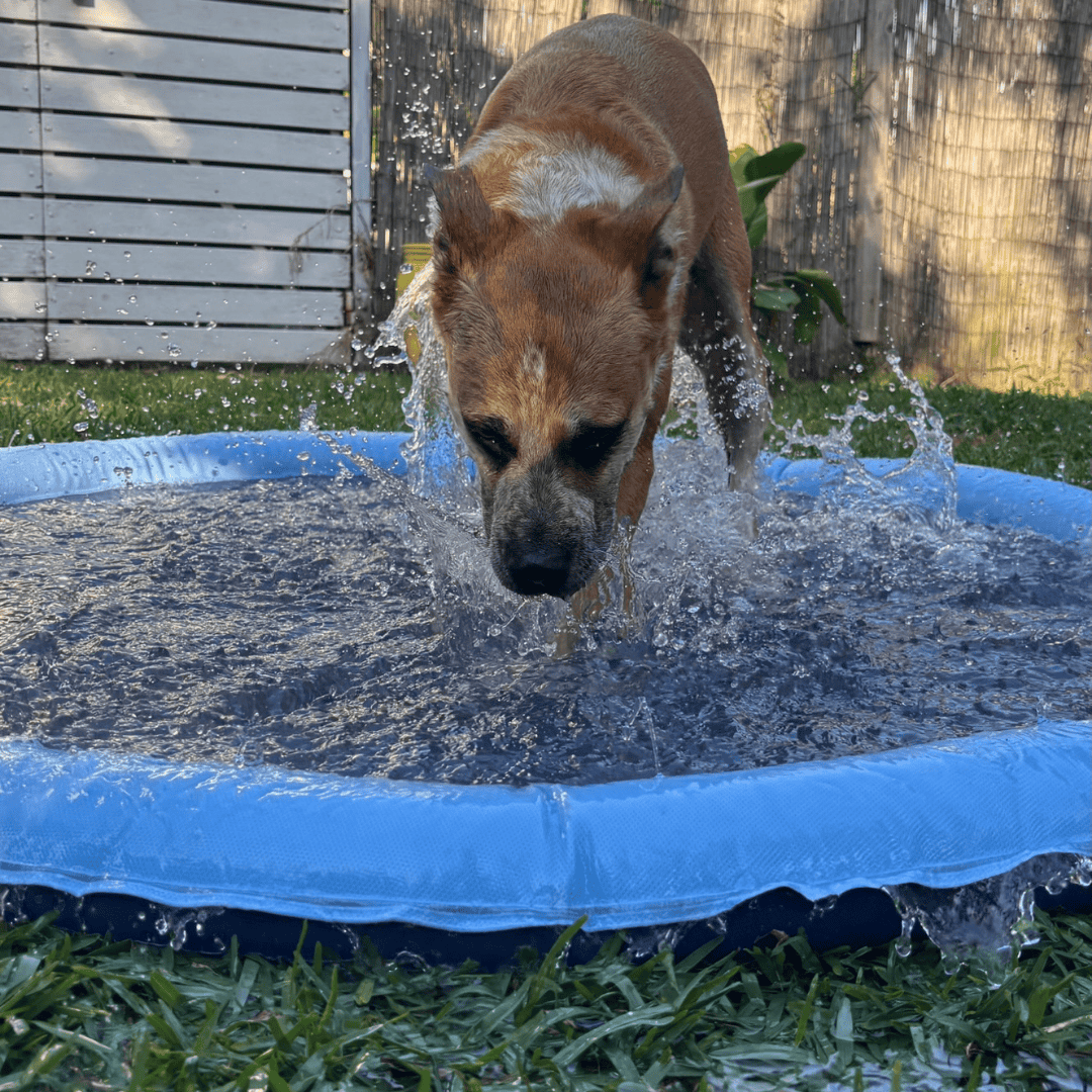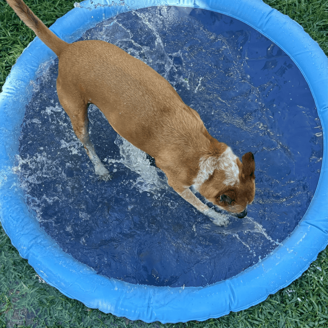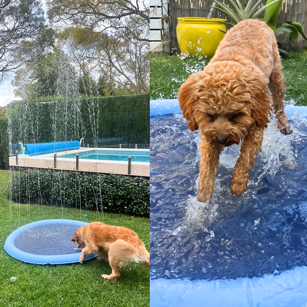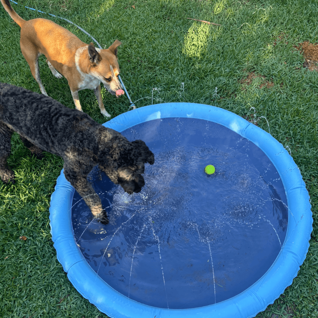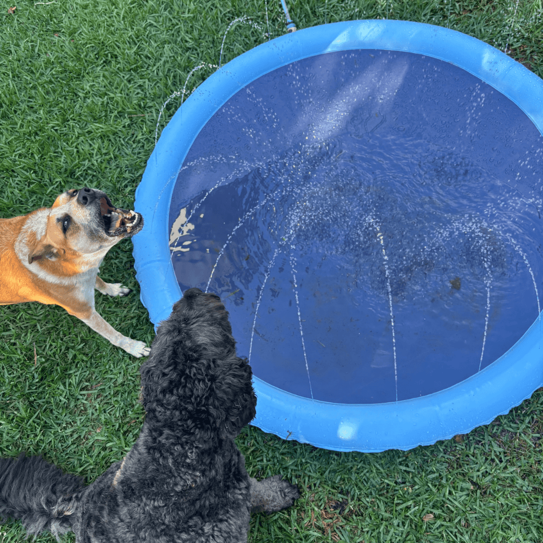 Our splash pad comes in three sizes (100cm, 150cm, and 170cm) to suit pups of all shapes and sizes! Small breeds love the 100cm, while mid sized to larger dogs (or dogs and kids together) may prefer 150cm. 170cm is suitable for larger breed dogs.